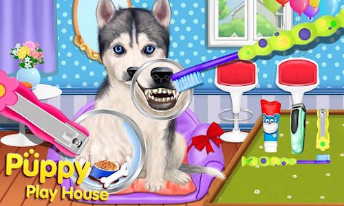 Who's ready for the cutest dogs on the planet? Puppy Dog Sitter - Play House is a fun doctor and dress up game that lets kids care for many different kinds of pets. When a dirty dog runs up to you, the first thing you should do is give it a bath! Scrub that dirt away, blow dry its hair, trim its nails, then give it a nice brushing. Cute dogs love the attention, doctor, and you'll love taking care of them!