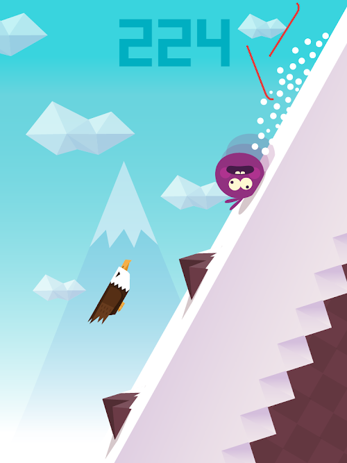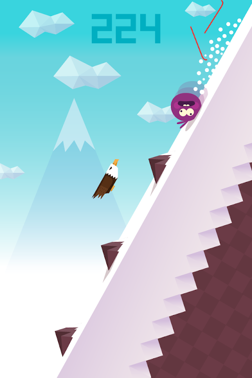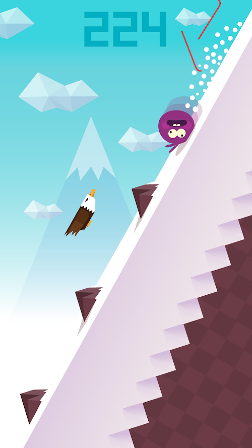 Jump and roll while avoiding all the rocks and eagles on your descent.