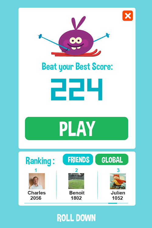 The Purplz has just created a huge avalange and needs your help to come down the hill!