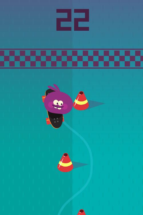 The Purplz has just entered an epic slalom skateboarding contest! Help him bomb the endless hill and slalom between the poles. Don't touch them otherwise you'll be disqualified.