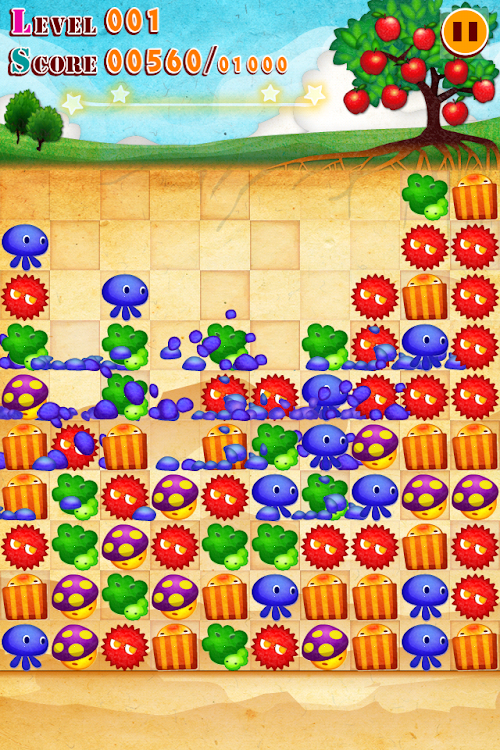 Tap on the same type of monster to show the scores that you can get! Tap again to clear them!