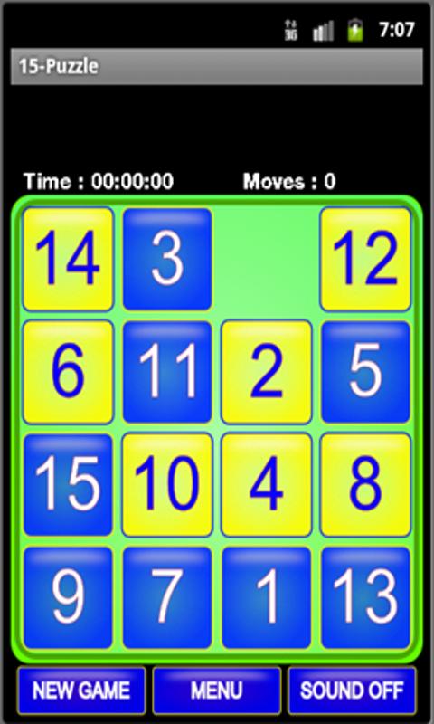 This is the classic sliding puzzle number 15 game. There are fifteen numbered pieces, randomly distributed in a 4x4 square tile. You have to slide the numbers in the proper order.