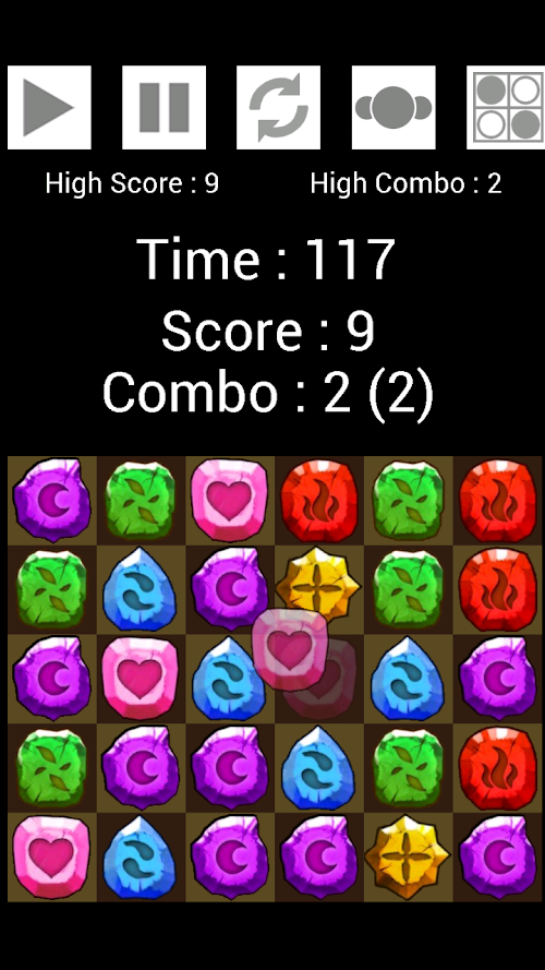 5.Click puzzle (gem) and color pad to change puzzle kind.