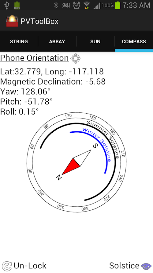 - Solar Compass to determine the sun rise/set azimuth based on the users current location