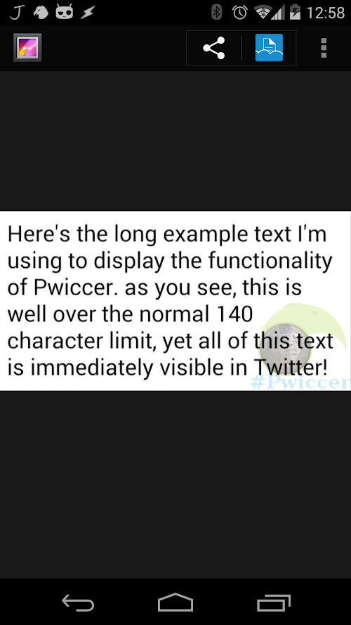 Pwiccer takes your long tweet, generates an image with that text, and posts that image along with as much of the original text as will fit. With Twitter inline picture viewing, your followers no longer have to go to another site or hope that their client knows how to resolve the custom link of any of the other long tweeting services.