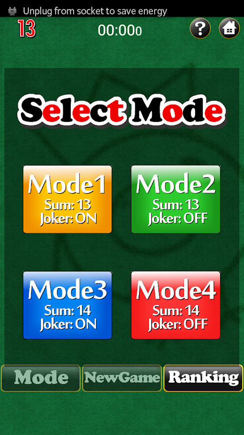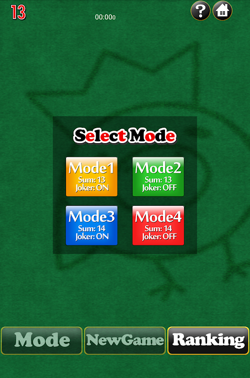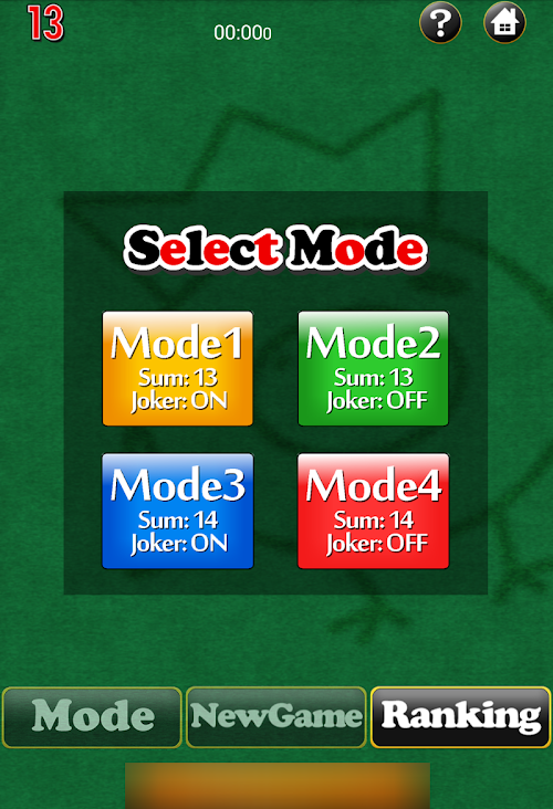 - Total 13 or 14, joker enabled or disabled, there are total four modes.