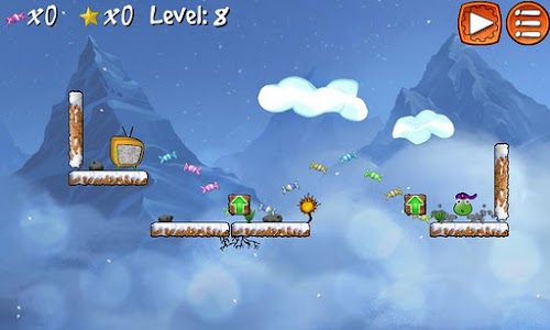 Pyxxis was left powerless and can only hop to the right! They are defenseless when facing spikes and evil creatures lurking about. But, you can help them! You have the power to get Pyxxis all the candy in the world. All you need to do is place the special power nodes correctly and watch them go!