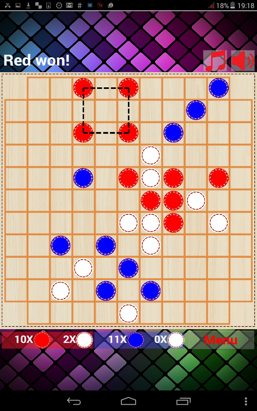 The goal is to place pieces on a grid so that they form a square. The player who makes a square first wins.