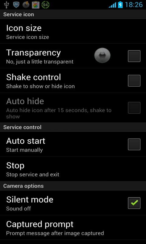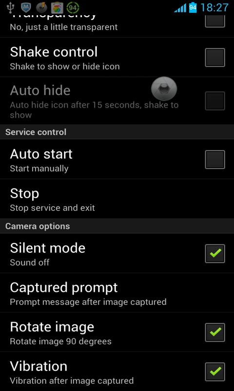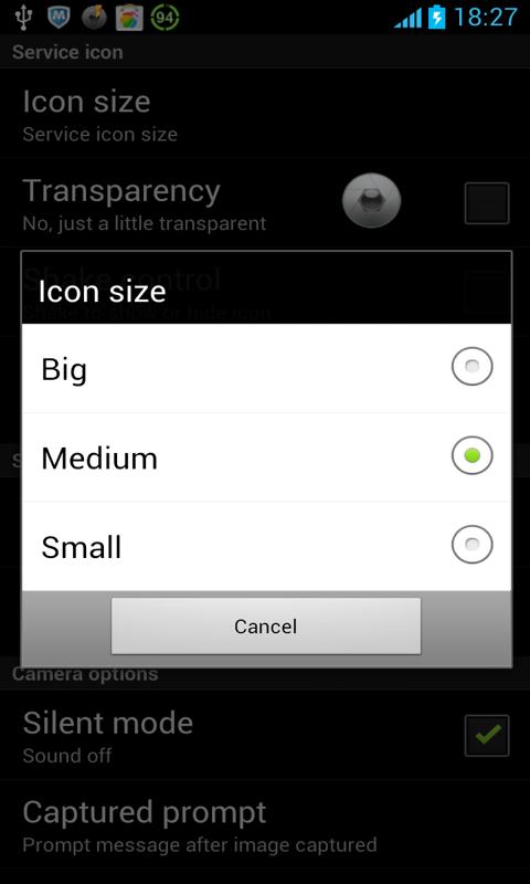 4. Quick Camera has some custom options; you can change appearance of the camera button icon, such as size, auto hide and transparency.