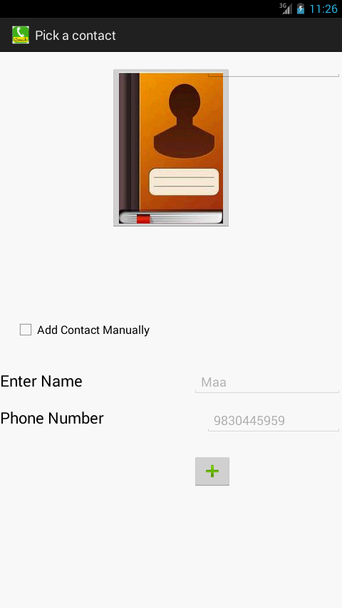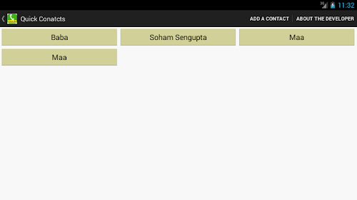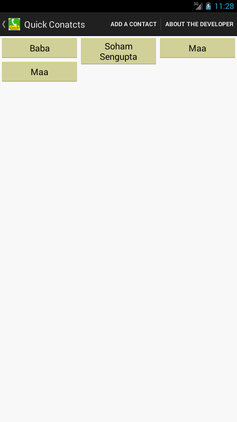 The application allows one to pick frequently dialed contacts a) from their phone book b) by manual entry ; which will be shown in the application as buttons enabling dial function to respective contact numbers.