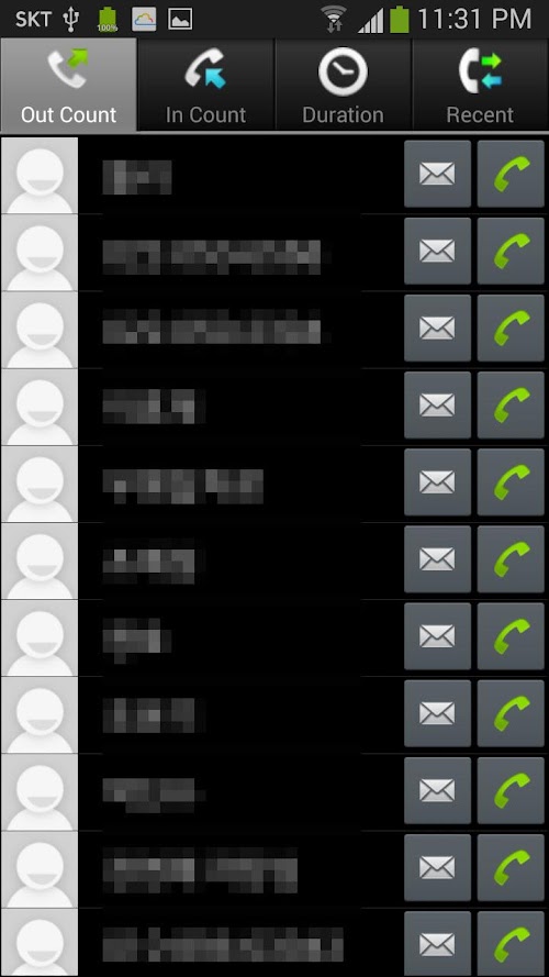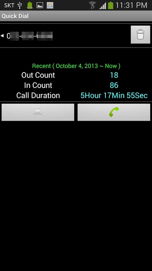 Shows the number of outgoing, incoming count, the last time the application is a currency.