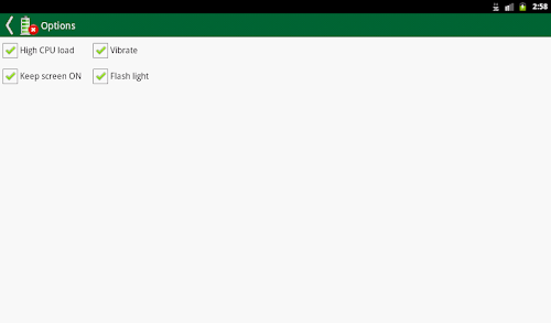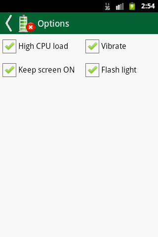 Discharge your mobile phone / tablet battery quickly. Usually your Android device required to discharge all battery capacities, and do a full recharge, to refresh its materials inside. This operation will make your battery more healthy, and get better working status. This application make the discharging progress fast, and more options to do.