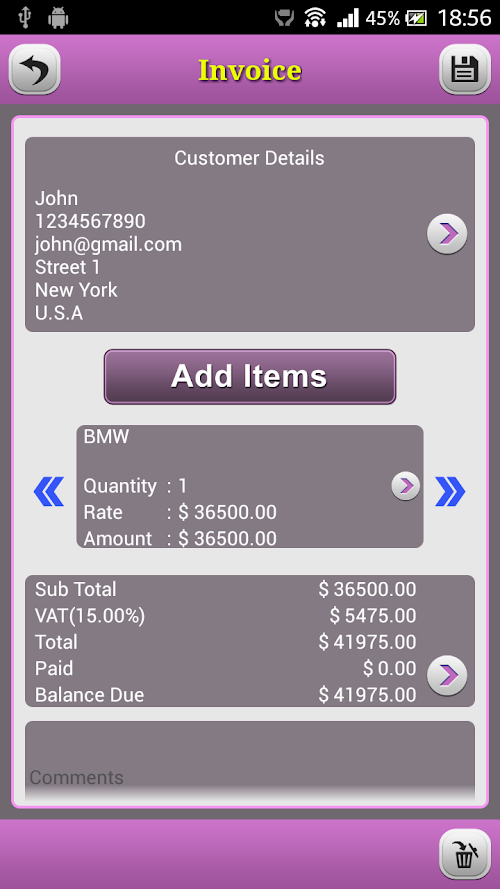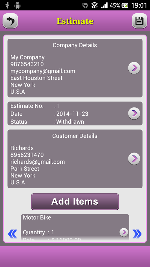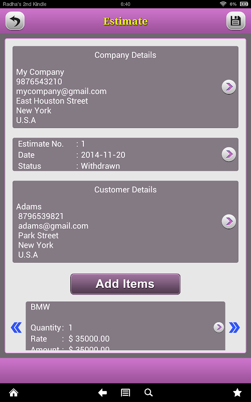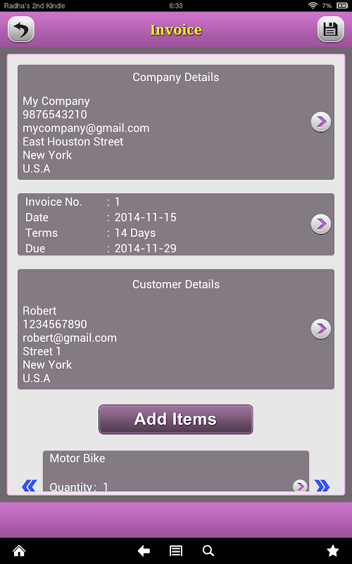 Quick Invoice Pro makes your device a powerful business management tool. It can help you to quickly create invoices, estimates and purchase orders with professional templates at anytime and anywhere. And you can email it to your customer straightly.