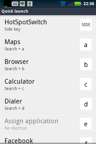 In Droid Pro, go to "Settings" -> "Application" -> "Quick launch" and set the side key or other shortcut to "HotSpotSwitch".