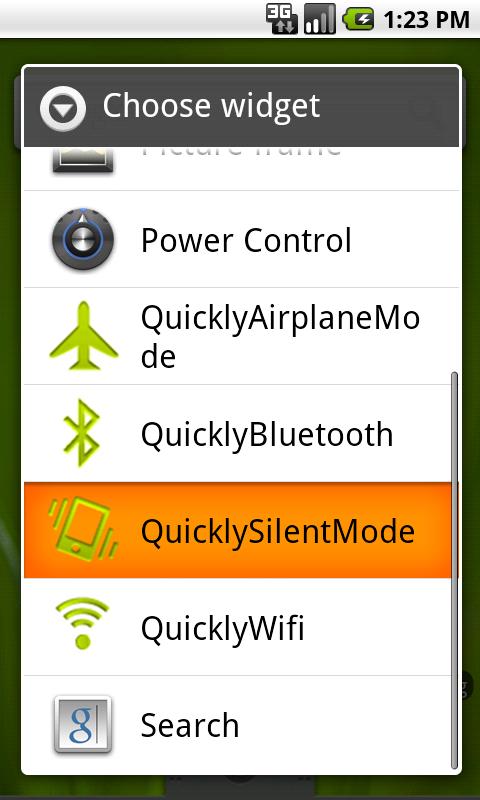 -Long tap at a home screen, and select [Widget] from the menu, and select [QuicklySilentMode] in the widget list.
