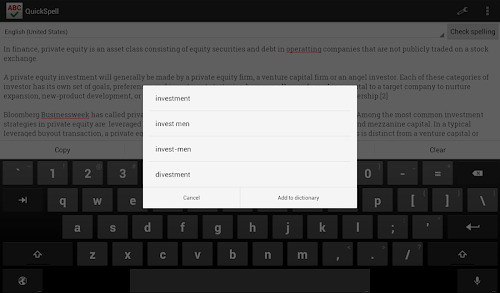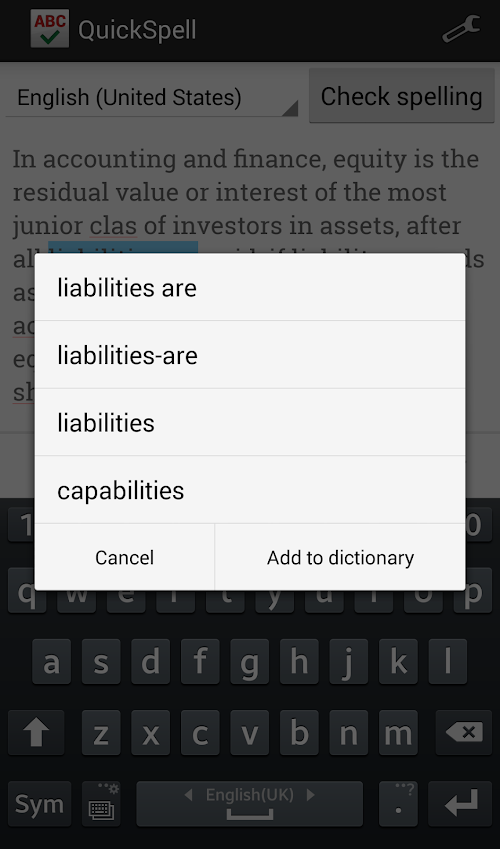 * QuickSpell offers a range of languages not available in the standard Android spelling tool.