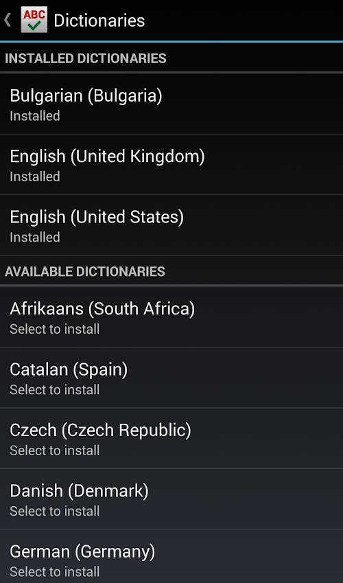Please note that on some customized Android 4.0.x device restart might be needed after the initial installation, in order for QuickSpell to appear in Android Spell Checker settings.