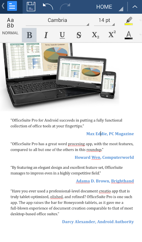 * The software also works on all devices having Android 2.2 and later with supported by MobiSystems apps as OfficeSuite Pro.
