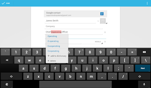 * You are able to use entries from phone's Contacts list and standard Android user dictionary.