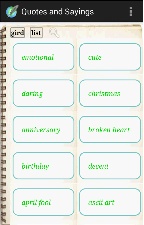 About 70+ categories of quotes , statuses and sayings,and for all occasions