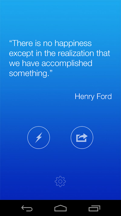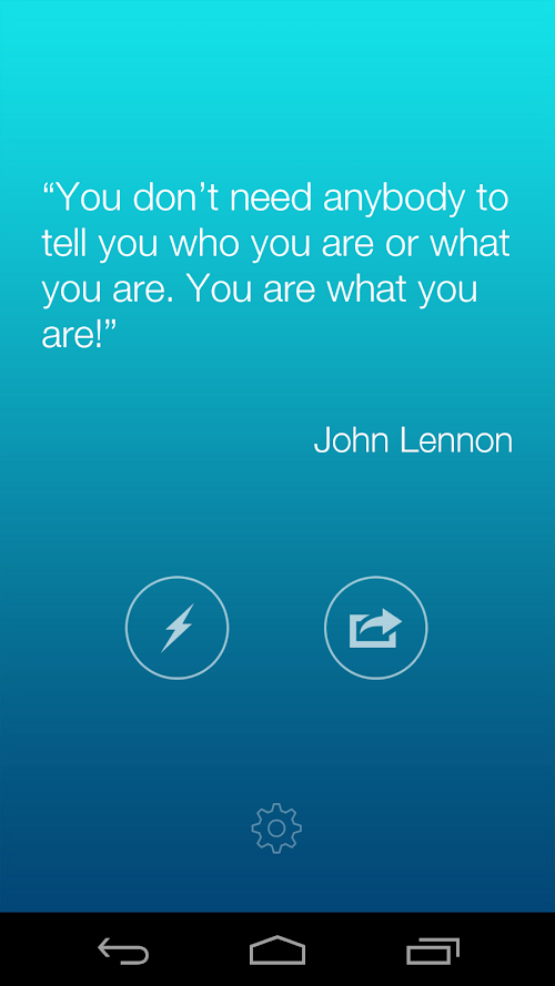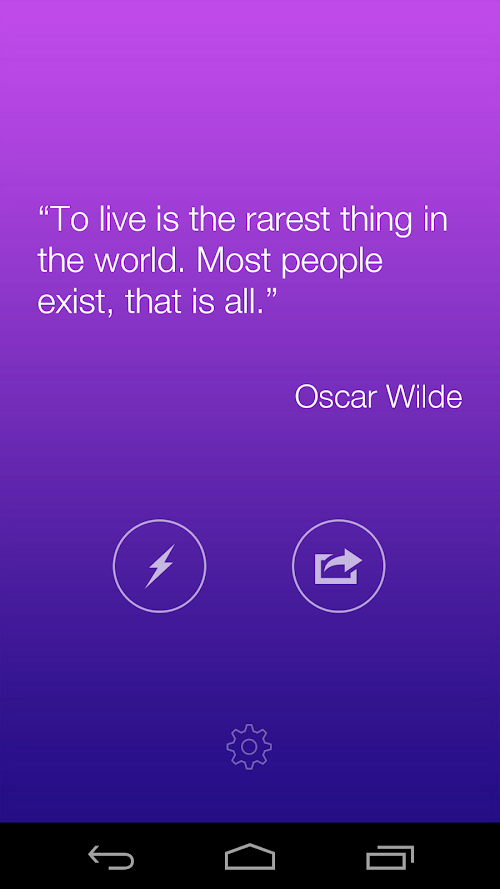 Through the Lighting button you will be able to randomly browse the hundreds of previous quotes. The Share button let you easily share the quote on Facebook, Twitter and.. Instagram too!