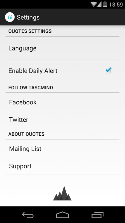 Everyday the app connects to our server to download the quote of the day, accurately selected from our private Quotes collection.