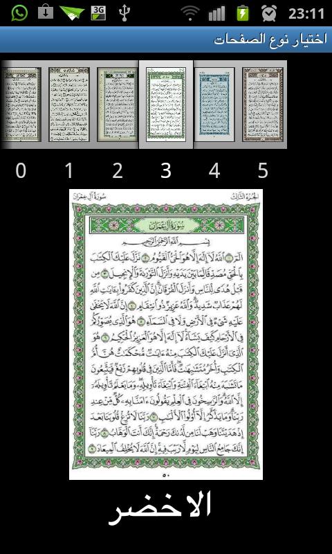 This application will install green pages with borders for Al Quran Al Kareem application.