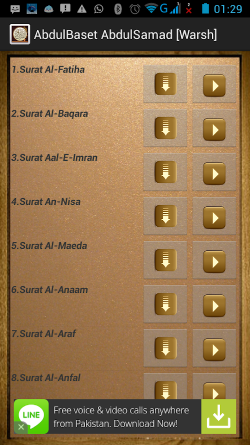 Quran Audio contains the recitation of well known and famous reciters(Qari).