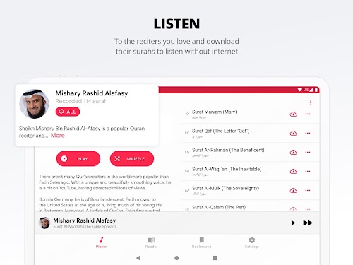Download mp3 Quran Pro today and listen to reciters Rahman or Abdul Basit, full Quran mp3 offline. Join millions of Muslims worldwide in connecting with the Holy Quran Majeed.