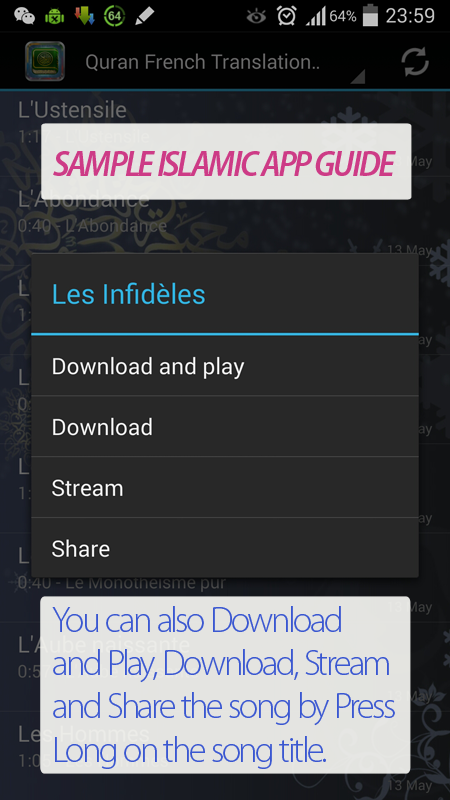 This App is your unique mobile source for high quality MP3 translations of the meanings of the Qur'an in Yoruba language.