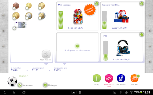 Start with your own safe, which you consider the secret code! Take pictures of all your savings goals so that you know what you save! Receive pocket money and earn extra money by doing chores for your parents, grandparents or your neighbors! Keep your money in the safe and keep the app in which you spend your money. Go get your savings goals? Are you having difficulty with money to go? Or are you a real saver? Money Coach Yvette is there for you, to teach you responsible with your money to go and how to reach your savings goals. They always give you tips and tricks to make money and help you with your savings. You learn that you can spend money only once and how you can save the best.