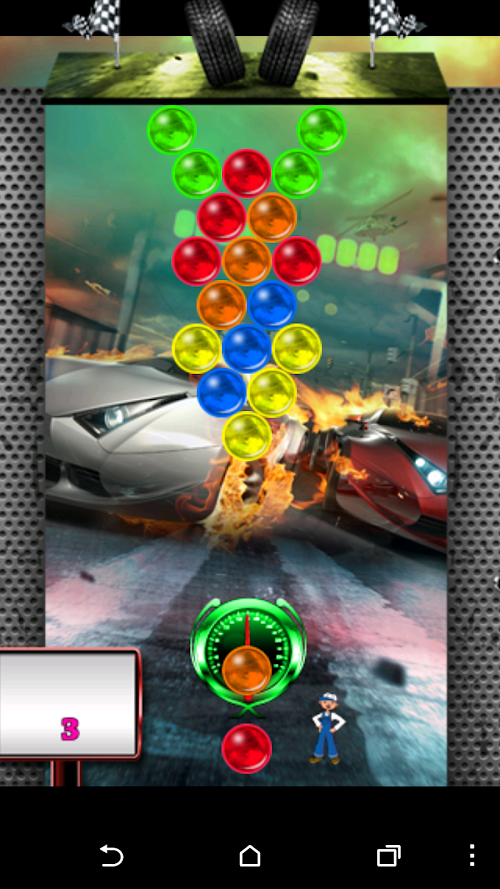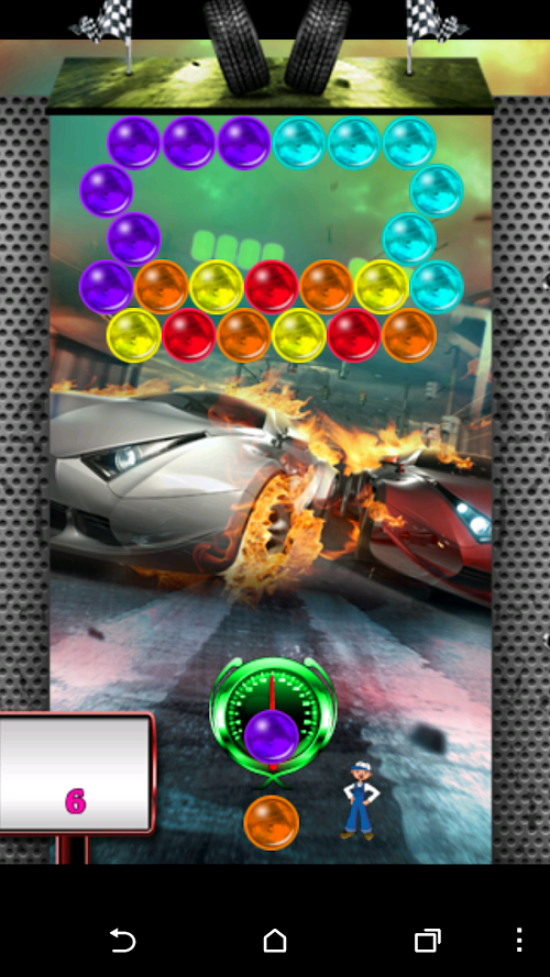 On the background of the beautiful futuristic car art theme, use the speedometer canon to choose, aim and shoot to pop 3 or more similar metallic colored bubbles as fast as possible, this is best way to win against other Race Car Bubble Shooter lovers and become the number #1 "Racer" on the worldwide leader boards.