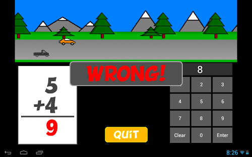 Practice mode is the rated version of flashcard mode - you have to enter the answer for each problem using the provided number pad. It also keeps track of how many math problems you've gotten right and wrong.