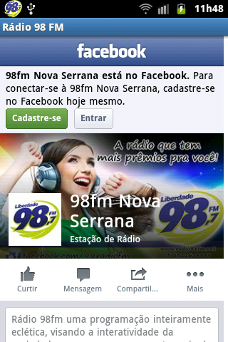 The Radio 98 FM is a radio station Legalized by the Ministry of Communications, installed the Plaza José Batista de Freitas s / n º - with the Parish Secretary, central Nova Serrana.