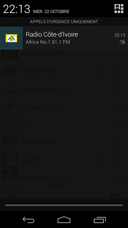 Ecoutez toutes les radios de la Côte-d'Ivoire sur votre mobile Android.
