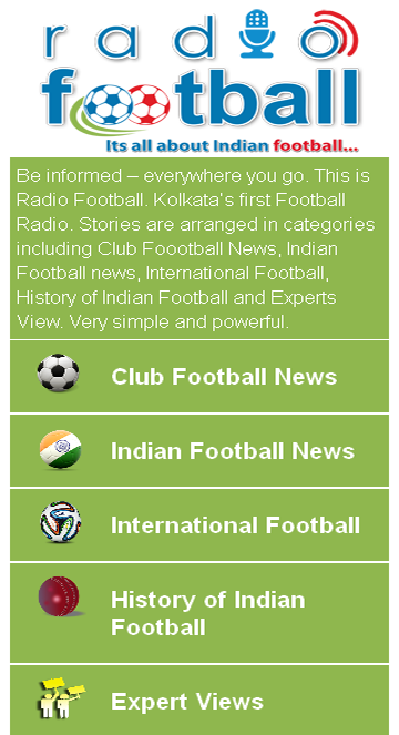 everywhere you go. This is Radio Football. Kolkata’s first Football Radio. Stories are arranged in categories including Club Football News, Indian Football news, International Football, History of Indian Football and Experts View. Very simple and powerful.
