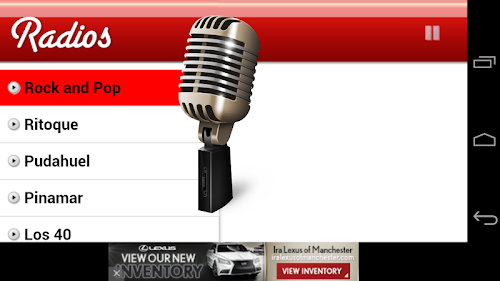 Escucha radio por internet desde un solo lugar, con Radios Chilenas tienes a tu disponibilidad las principales radios de Chile en tu Smartphone. Con esta aplicación puedes sintonizar las mejores emisoras Emisoras nacionales y regionales de Chile. Escucha tus radios preferidas sin necesidad de tener un receptor FM.