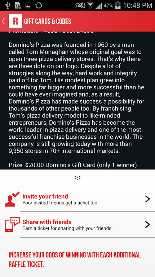 Enter raffles for amazing prizes that you like all from your mobile device!