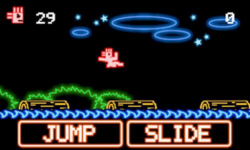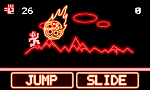 Start with up to 999 lives in this mad dash for survival through a fast-paced digital gauntlet of lasers, UFOS, meteors,and giant fists! With twenty levels and five difficulty settings, there are plenty of challenges ahead! Earn medals for your achievements!