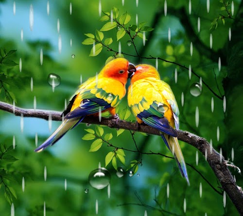 and colorful 3D bird images. It shows strong love between birds. This rainy bird live wall paper having