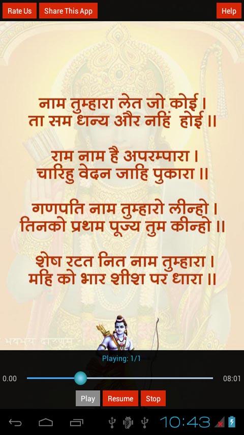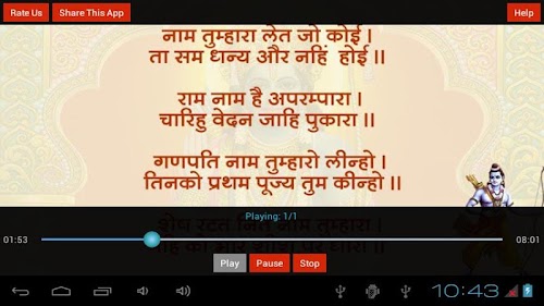 This Application contains Ram Chalisa in Hindi Language with Audio.