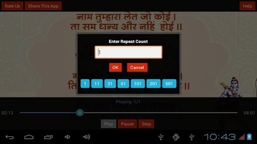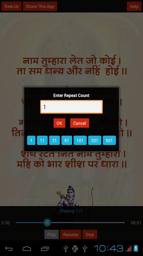 8. Feature to Repeat the Chalisa as many times as you want.