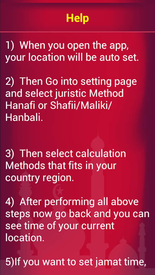 After Downloading the app apply setting and read help page then please compare the time with Mosque Near to You. If you find difference in time then don't use the app. If you find few minutes different you can set them by using Time Adjustment Feature that will available on clicking any Prayer.