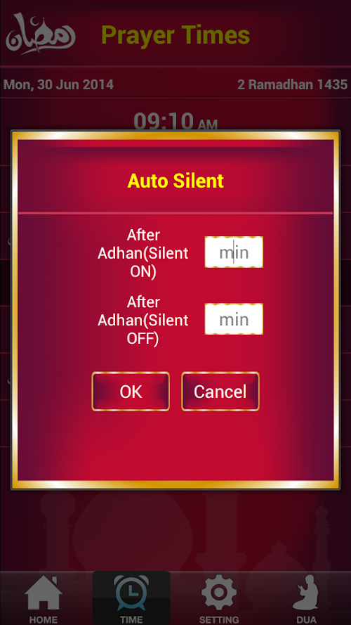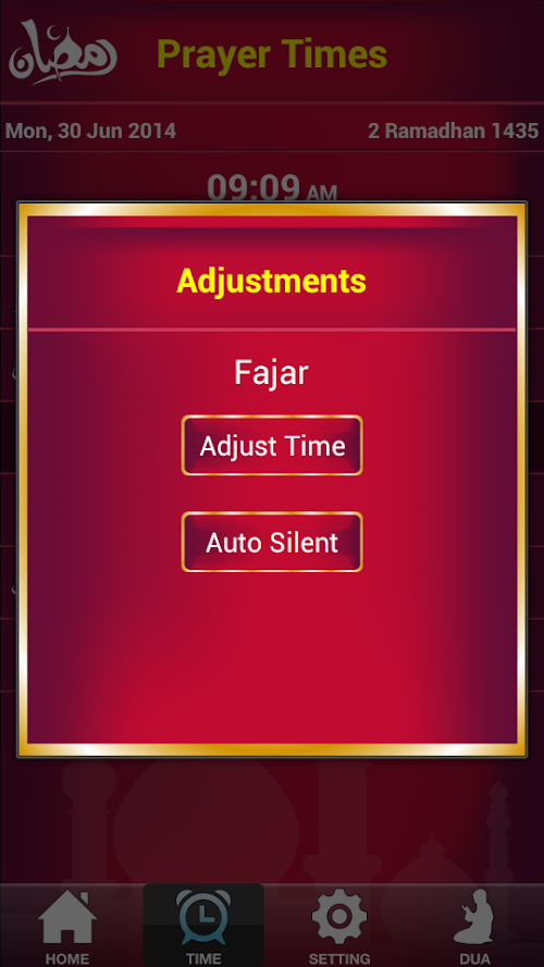 - If there is slight difference in separate prayer time, you can adjust it by clicking on that prayer and also can set Auto silent option from there.