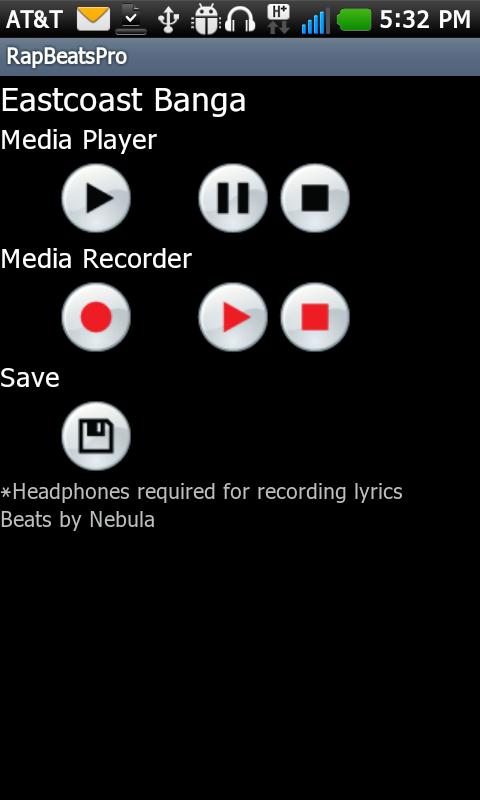 Record your lyrics to professional rap beats. Make your own lyrics to these beats, record them with the easy to use lyric recording user interface, and play them back. The beats are instrumentals and you will record your own lyrics to the beats. You will need a pair of headphones to record your lyrics so that the recorder doesn't hear the beats while recording your voice.