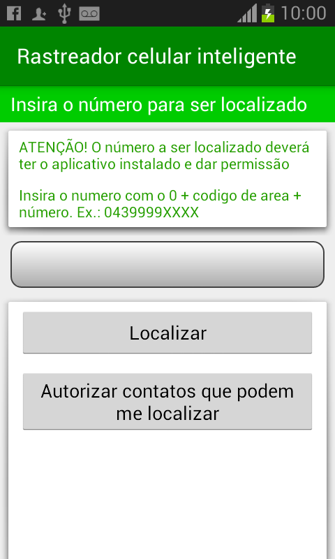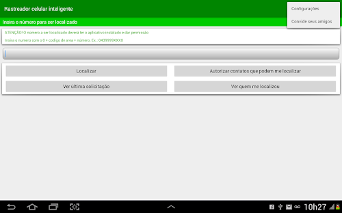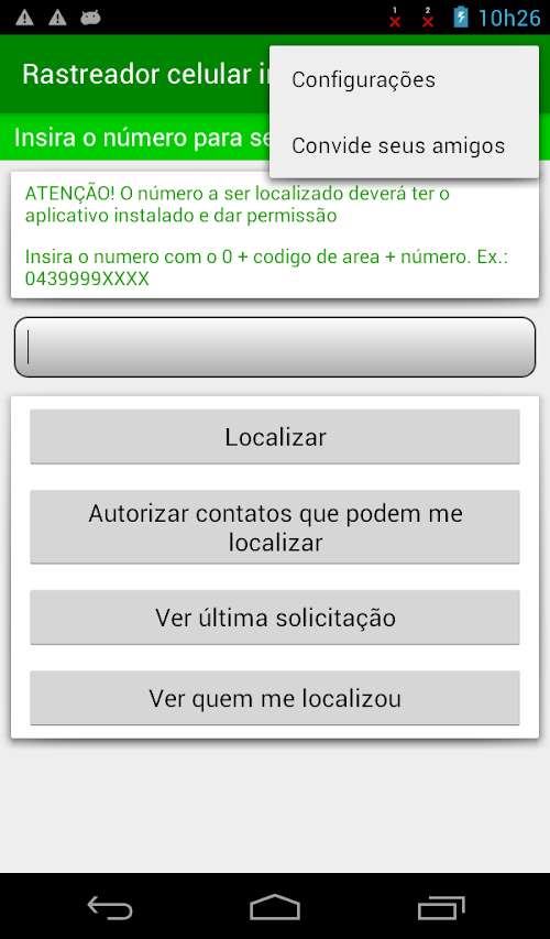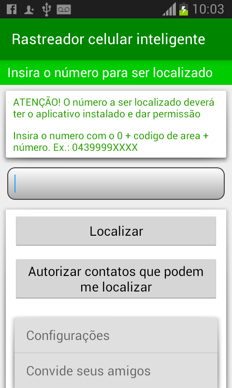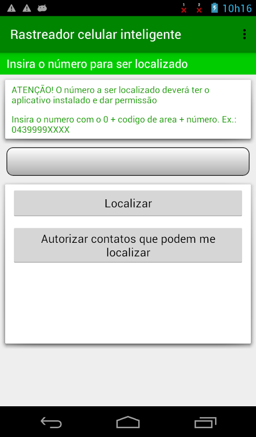 ATTENTION: If the number you want to locate or number you want to give permission for you locate the place is NOT PLACE 0XX (Operator) and the area code, in locating and giving permission for the application to function properly.