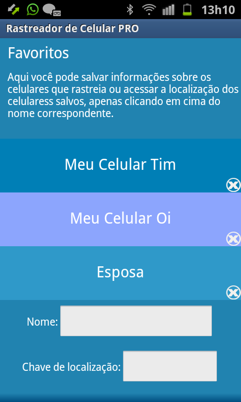 - Favoritos: Possibilidade de cadastrar os celulares que você monitora a localização permitindo acessá-los mais rapidamente.