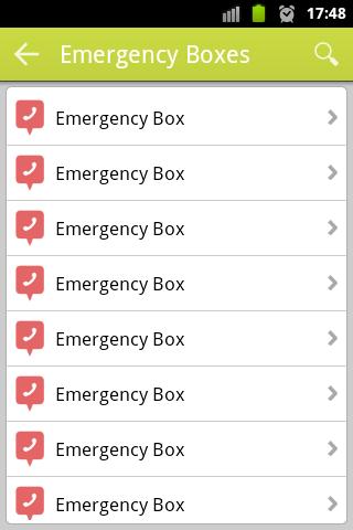 - List of emergency boxes sorted by the ones closest to you