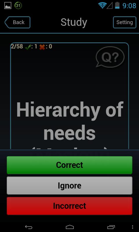Progress tracking :When a user studies a card set, app will resume the last session of the user on this card set.