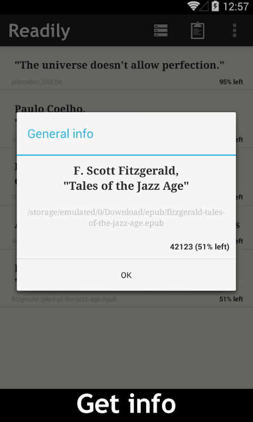 * File storage: choose .txt, .epub or .fb2 file to read using Readily.